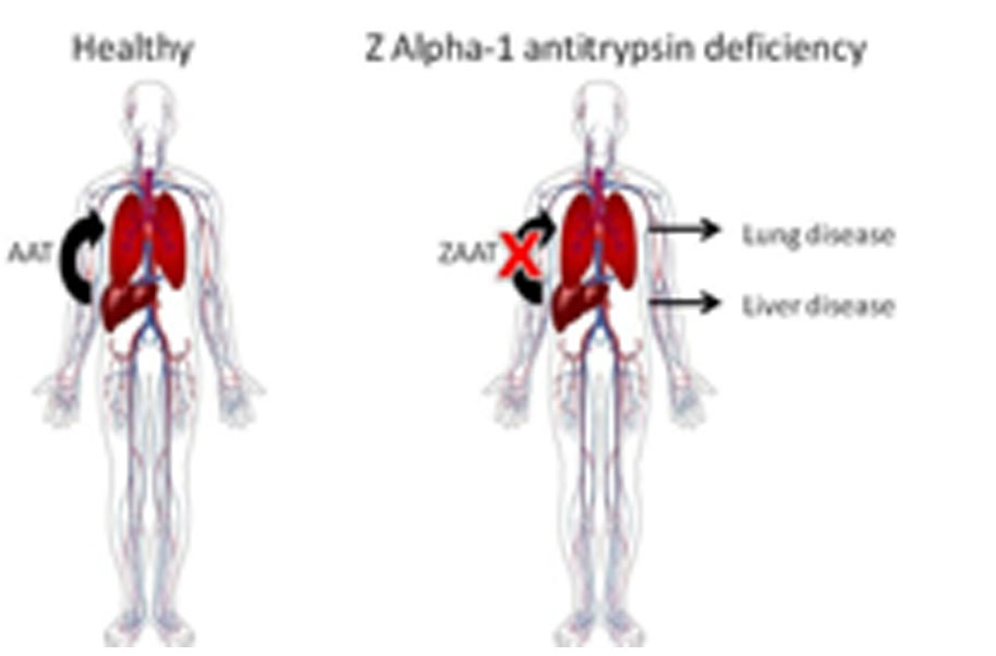 Alpha-1 antitrypsin (a1at) deficiency is a condition in which the body does not make enough of a protein that protects the lungs and liver from damage. The condition can lead to emphysema and liver disease (cirrhosis)