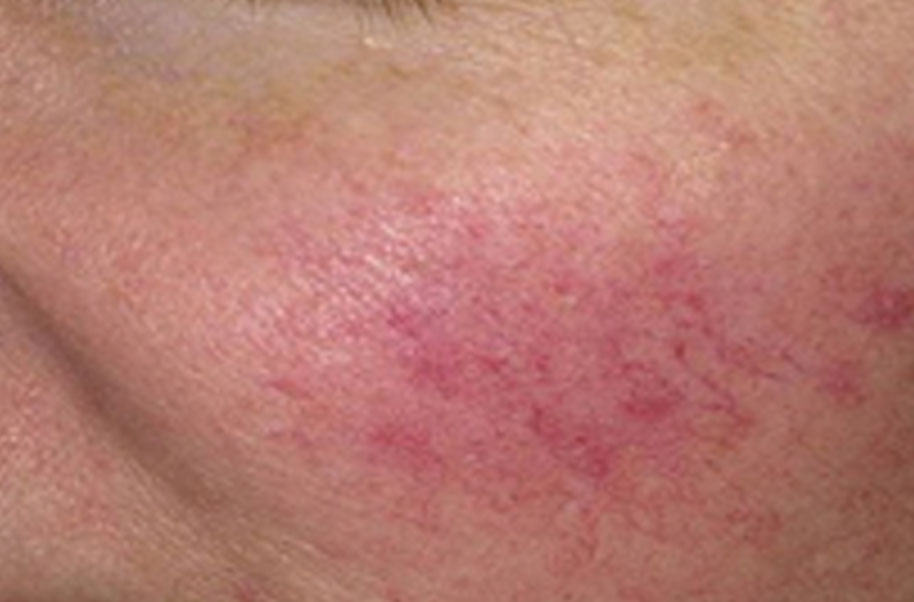 A chronic skin disease that causes persistent redness over the areas of the face and nose that normally blush: mainly the forehead, the chin, and the lower half of the nose.