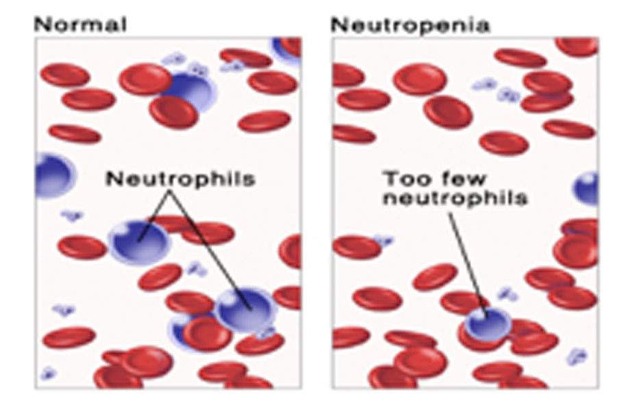 Neutropenia (noo-troe-pee-nee-uh) is an abnormally low level of neutrophils. Neutrophils are a common type of white blood cell important to fighting off infections — particularly those caused by bacteria. For adults, counts of less than 1,500 neutrophils per microliter of blood are considered to be neutropenia.