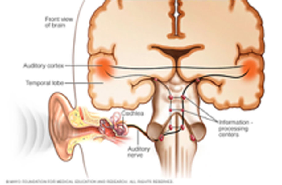 Partial or complete hearing loss. Levels of hearing impairment vary from a mild to a total loss of hearing. Elderly adults suffer most often from hearing loss. The most common cause of hearing loss in children is otitis media. A substantial number of hearing impairments are caused by environmental factors such as noise, drugs, and toxins. Deafness can also result from inherited disorders.