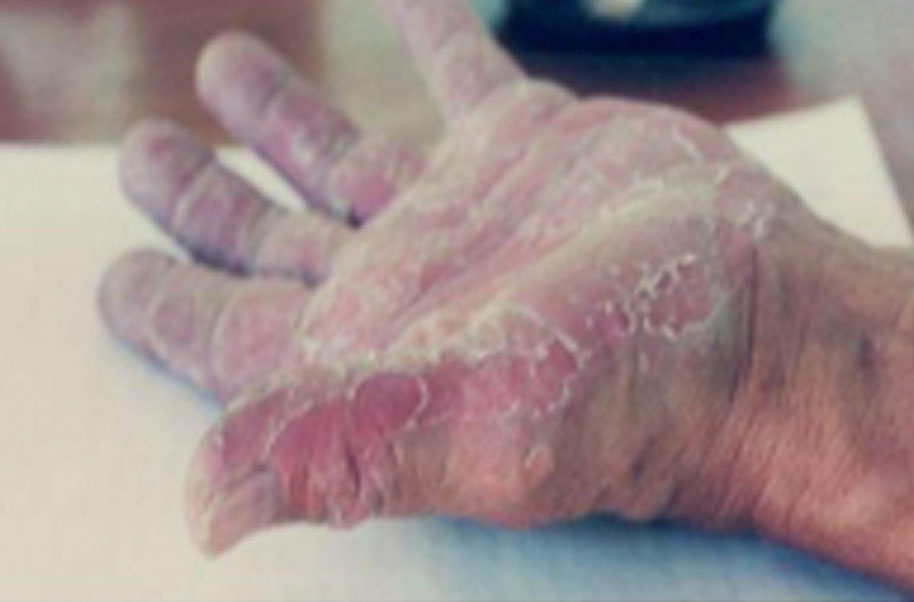 Keratolytic winter erythema also often termed as oudtshoorn disease, oudtshoorn skin, and erythrokeratolysis hiemalis is a rare form of autosomal dominant skin disease. It is identified as a cyclical disruption of epidermal keratinisation, which predominantly affects the palmoplantar skin, causing patches of thickened skin, redness and peeling of the skin on the soles and palms.