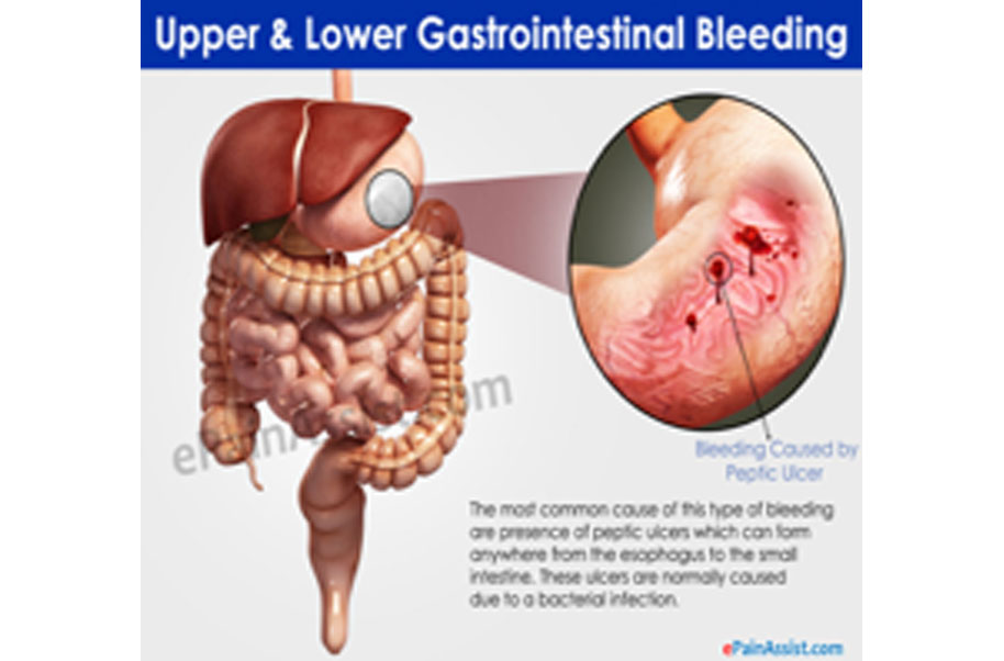 Peptic ulcers are a common cause of gi bleeding. These ulcers are open sores that develop in the lining of your stomach or duodenum. An infection from h. pylori bacteria usually causes peptic ulcers. Also, enlarged veins in your esophagus can tear and bleed as a result of a condition called esophageal varices.