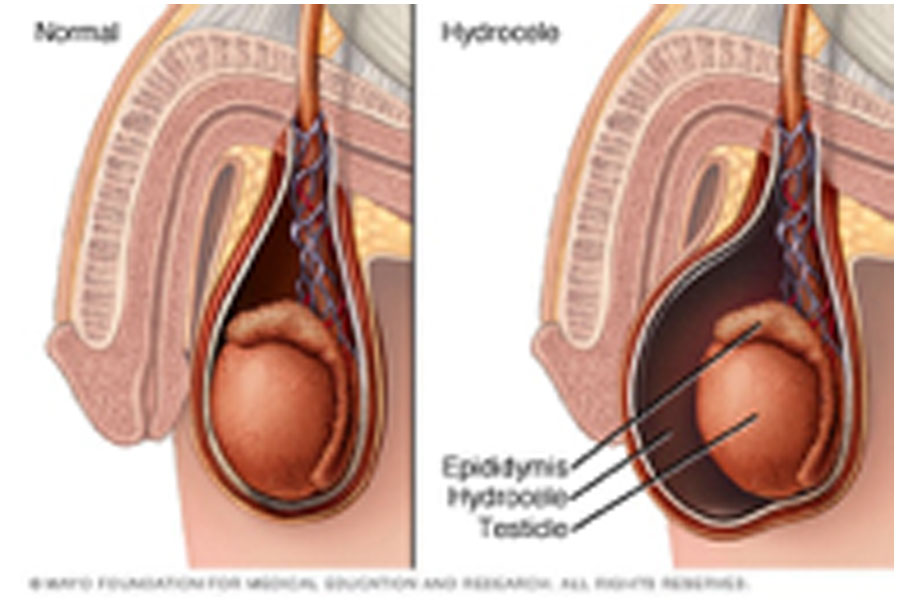 (hi-droe-seel) is a type of swelling in the scrotum that occurs when fluid collects in the thin sheath surrounding a testicle. Hydrocele is common in newborns and usually disappears without treatment by age Older boys and adult men can develop a hydrocele due to inflammation or injury within the scrotum.