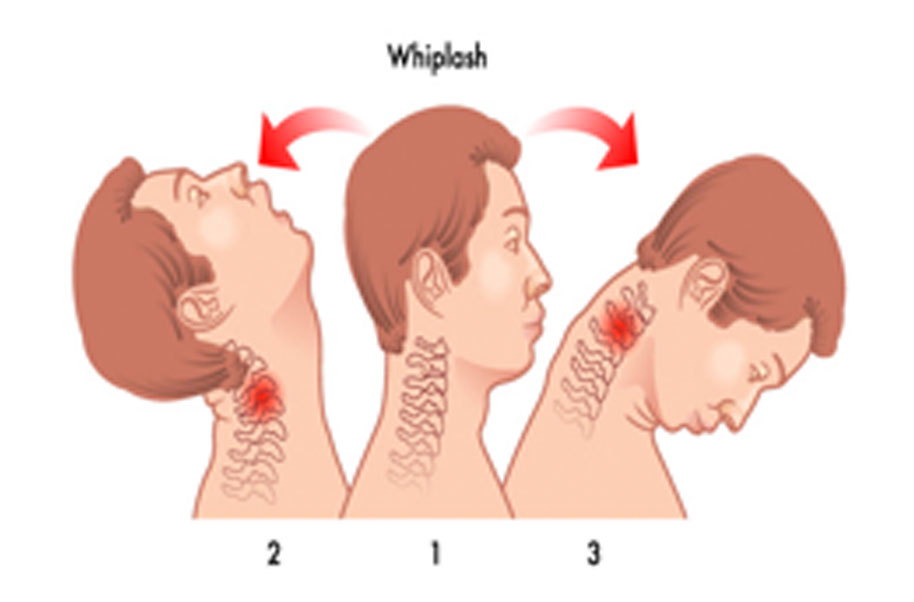 A hyperextension and flexion injury to the neck, often a result of being struck from behind, as by a fast-moving vehicle in a car accident.