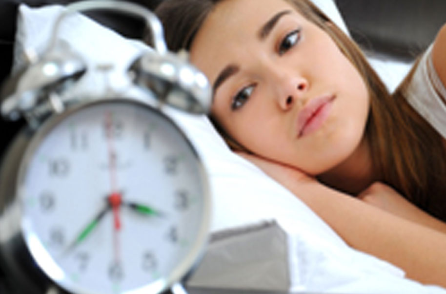 Difficulty falling asleep, including difficulty finding a comfortable sleeping position, waking during the night and being unable to return to sleep, feeling unrefreshed upon waking, daytime sleepiness, irritability or anxiety.